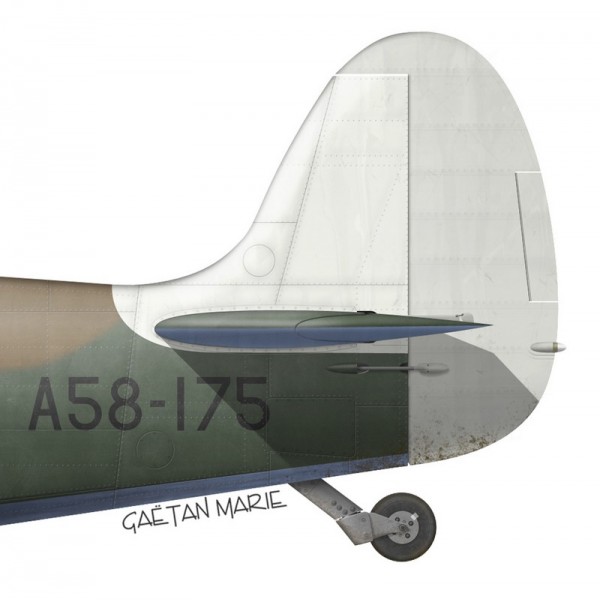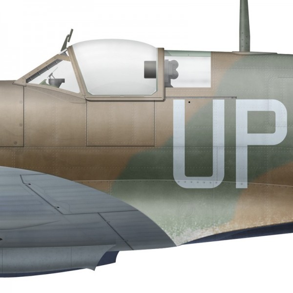 High-quality aviation art print of Spitfire Mk Vc A58-175 flown by 5-victory ace Flight Lieutenant Richard “Doug” Vanderfield, No. 79 Squadron RAAF, Kiriwina, December 1943. Side-view profile of a Commonwealth ace's Spitfire.