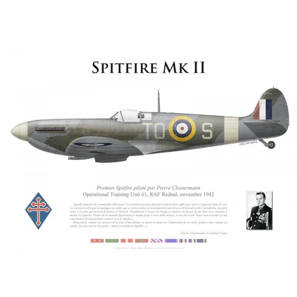 With 33 aerial victories, Pierre Clostermann DFC & Bar is France's ace of aces in World War II. He described his wartime experiences in his best-selling memoirs Le Grand Cirque (The Big Show), and notably his first flight in a Spitfire of OTU 61 in 1942.