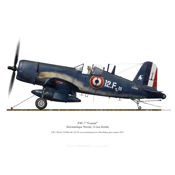 F4U-7 BuAer 133698 codé 12.F.19 vu au tensionnement sur le Bois-Belleau, juin à octobre 1955.