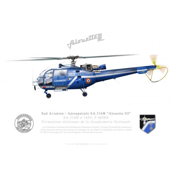 Les Formations Aériennes de la Gendarmerie Nationale ont utilisé l’Alouette III pendant de nombreuses années dans des missions de sauvetage en montagne, de surveillance, de recherche et de liaison. A partir de 2005, l’Eurocopter EC 145 vient remplacer l’Alouette III en service.