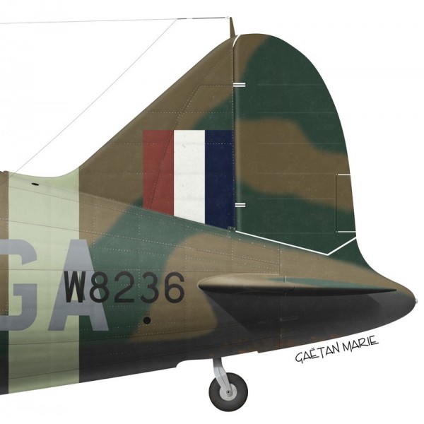 Print/poster/lithographie aéronautique de haute qualité du Brewster Buffalo Mk I piloté par William Allshorn, commandant du No 21 Squadron RAAF à Singapour, en décembre 1941. Vue de profil.