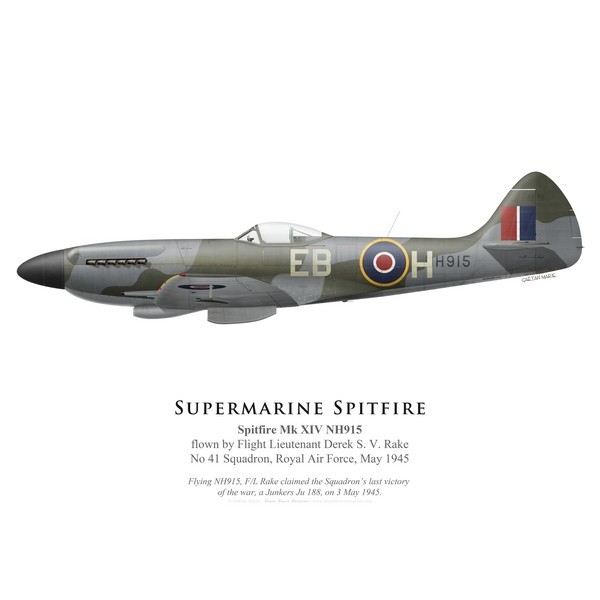 Aux commandes du NH915, le F/L Rake remporta la dernière victoire aérienne du No 41 Squadron: un Junkers Ju 188 abattu le 3 mai 1945.