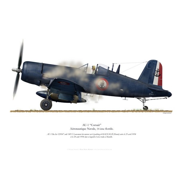 AU-1 BuAer 129367 codé 14F.5. Lancement du moteur sur le parking de BACH-MAÏ (Hanoï) entre le 23 avril 1954 et le 24 août 1954, date à laquelle il sera rendu à Manille.
